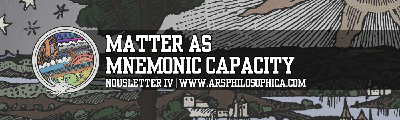 So, a mnemonic matter principle is in essence the attribute by which virtualization of information in a particular and plural mode is made possible in a Reality that is ultimately unitary or monistic. Put more simply, reality in the way we experience it, full of defined things, is a virtualization (or simulation) of information inscribed onto this receptive, plastic memory principle—which we can rightly call the “matter” or material of these defined things.